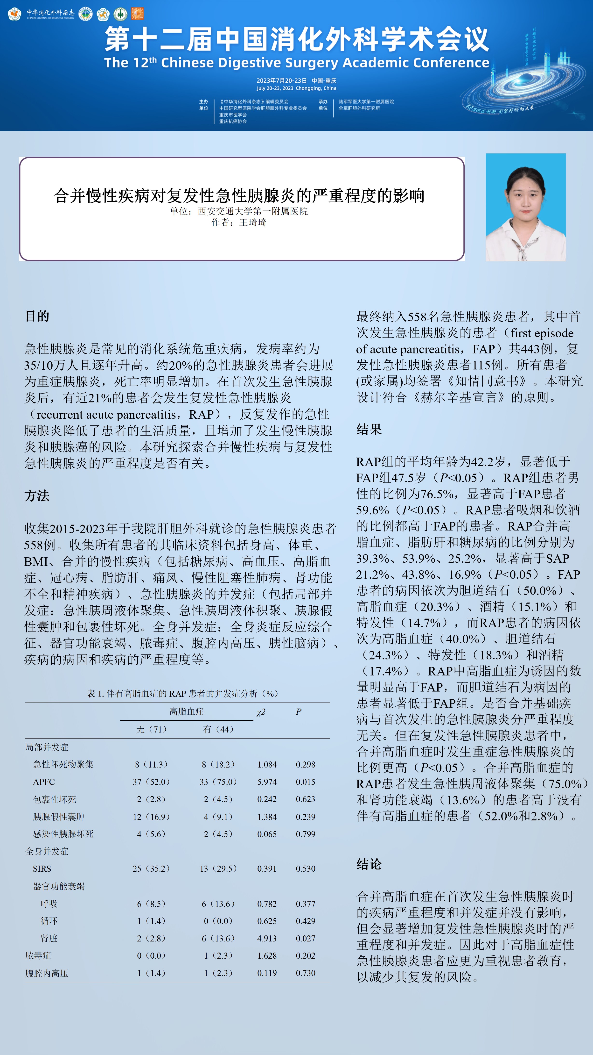 合并慢性疾病对复发性急性胰腺炎的严重程度的影响